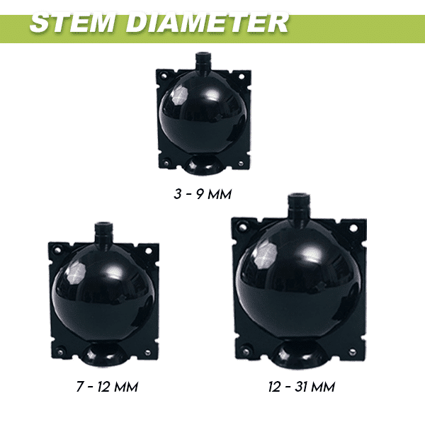 - Stieņa diametrs: 3–9 mm, 7–12 mm, 12–31 mm