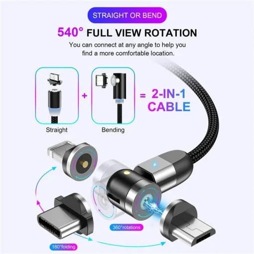 - Nosaukums: dubultais 360° magnētiskais kabelis